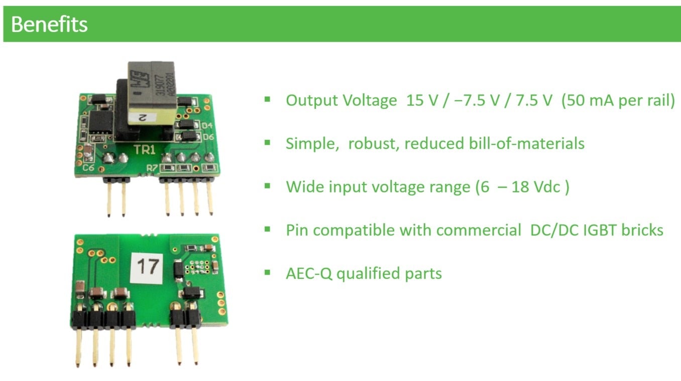 Figure 4. Benefits of the high voltage auxiliary power supply 15 W (SECO−HVDCDC1362−15W15V−GEVB)