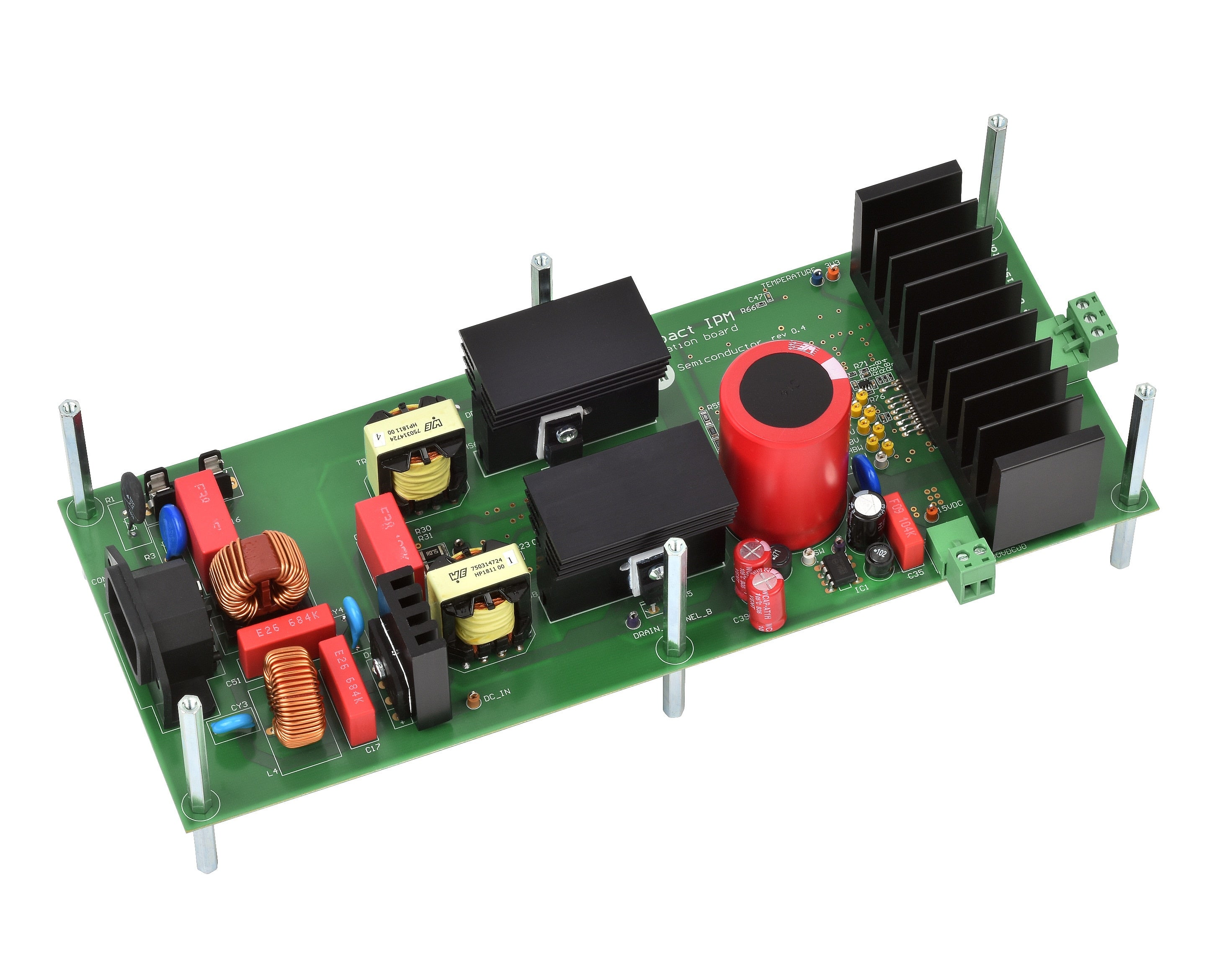 首两款电源板采用我们的智能功率模块(IPM),适用于工业和家用电器电机驱动应用。 IPM集成用于逆变器的六个功率开关、门极驱动器和一个热电偶,其保护功能包括过压/欠压锁定,防击穿和过流跳闸。