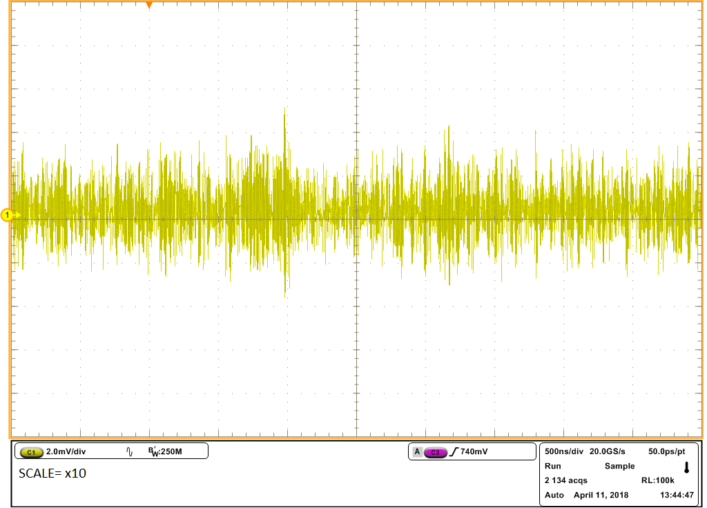 但什么是频谱噪声密度呢?如果您及时测量噪声,您只能看到噪声的绝对振幅值,但不能看到所有噪声属性的频率。正如上面的图片所示,噪声在x10的范围内。频谱噪声密度曲线是所产生的噪声之和。每一噪声都是在窄幅的频率范围内测量的。您可在下面的图片中看到频谱噪声密度。