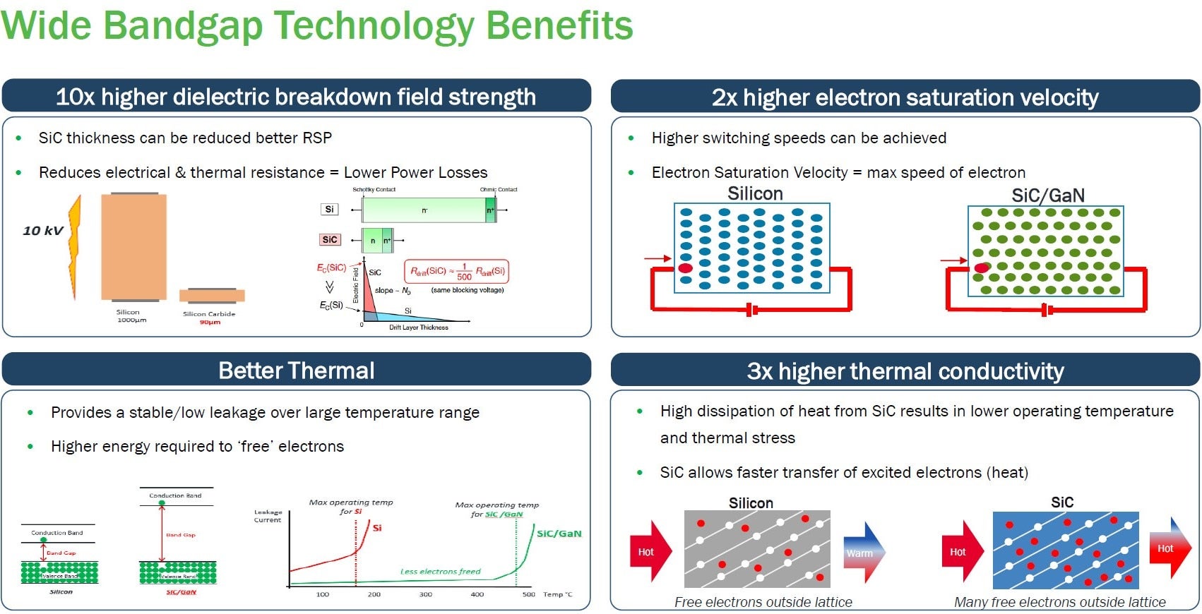 因此,主要的半导体制造商如安森美半导体,一直在探索其他材料来构建未来的开关器件。所谓宽带隙(WBG)材料,包括氮化镓(GaN)和碳化硅(SiC),已成为关注的焦点,因为它们的性能非常适合开发高效的半导体器件。