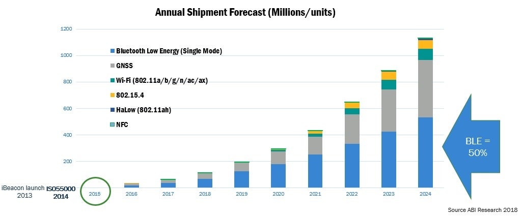 モノのインターネット(Internet of Things、IoT)に関わる多くの業界でみられるように、Bluetooth® Low Energy (LE)接続は資産(アセット)管理の状況を完全に変えました。現在、Bluetooth LE は、追跡可能な資産タグの50%のシェアを占めています。