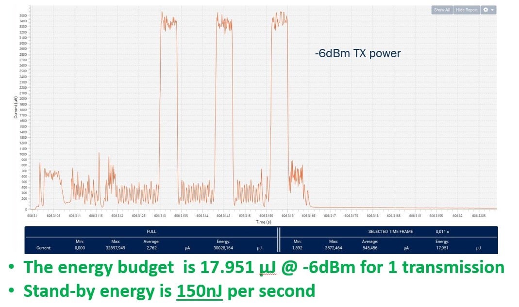 図7. 最適化されたBluetooth LE の送信および待機時のエネルギー消費量測定結果